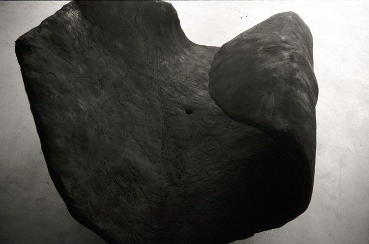 Mit seiner Oberfläche wie schwarzer Knochen oder eine Panzerung teilt das "black shield" das Potential eines Schattens. Seine Gegenwart definiert eine Form, eine Gestalt, gleichzeitig aber fasziniert es mit einer versteckten Gegenwart, eine Bedeutung, die es nicht mitteilen will. Es spielt mit unserem Sinn der Schwerkraft und konfrontiert uns mit seinem "hier sein".