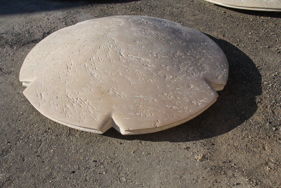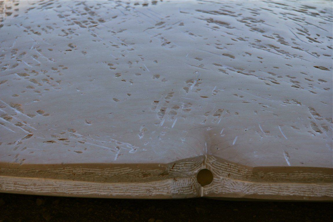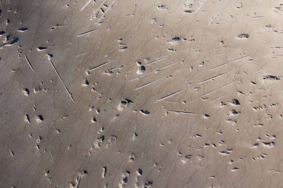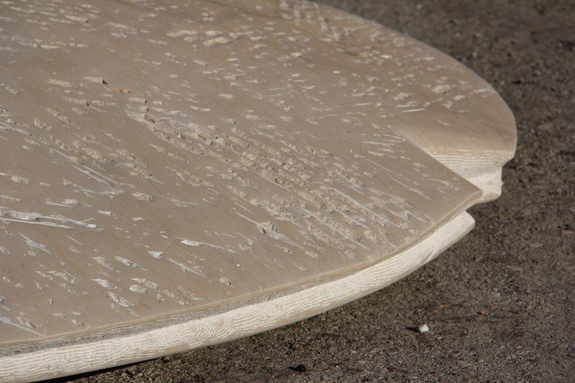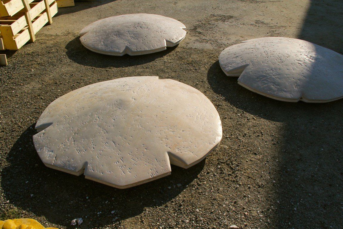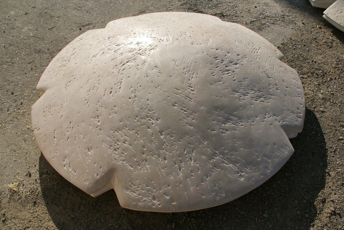 These Shield-like shapes recreate an environment that allows the viewer to stroll among them like on a walk in the desert, the ground this stone comes from, the Egyptian desert. In their scale, they won’t allow us to observe them in their entirety once we are up close, we become an element next to them. The surface is a pale sand color with dark orange ripples running through. They encourage our “walk through the desert”, reflecting on being immersed among things made for consideration. They are an invitation to dream.