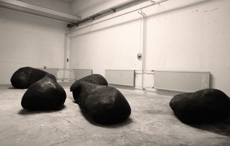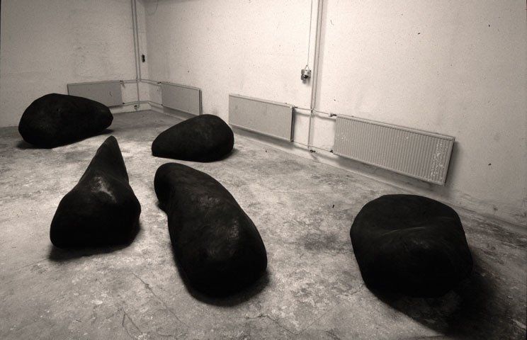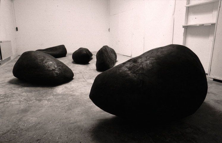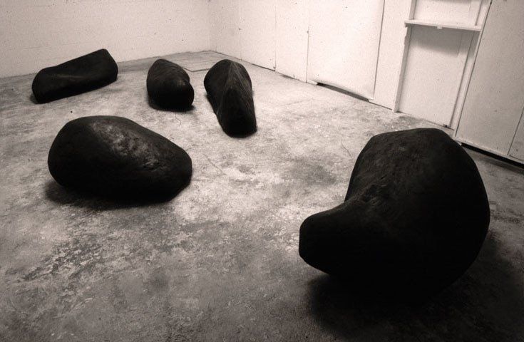 Plaster, graphite, wax (5 parts) I 62”x 40.5”x 32” (157 x 103 x 82 cm); II 50”x 36”x 25” (127 x 92 x 63 cm); III 69”x 36”x 21” (175 x 91 x 53 cm); IV 79” x 25”x 20” (200 x 63 x 50 cm); V 83”x 30” x 25” (210 x 75 x 63 cm)