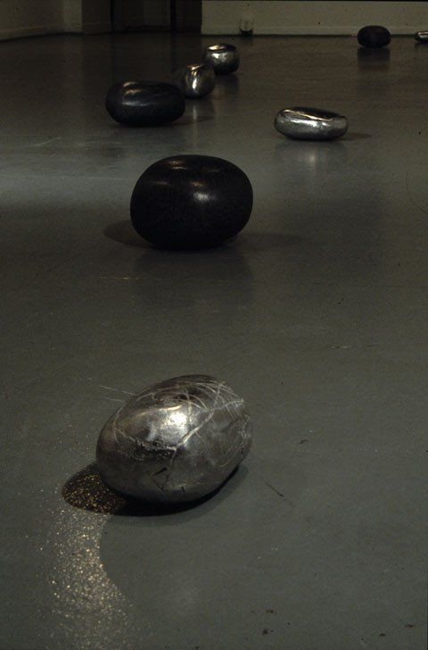 New works is the title of a solo exhibition that I realized in January 1996 during my stay as an exchange student in Halifax, NS. The exhibition consisted of 28 stone-like shapes in various sizes between 15 and 35 cm in diameter, scattered on the gallery floor.