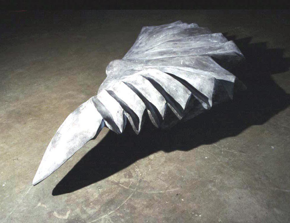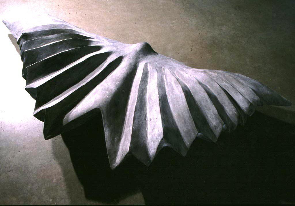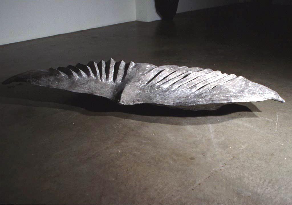 Winged Beings I + II, 2001 are the beginning of a series of new works that are made in hydrocal plaster for bronze and stone. The form reminds of a type of petrified shell that is found in the deteriorating cliffs around the Bay of Fundy.