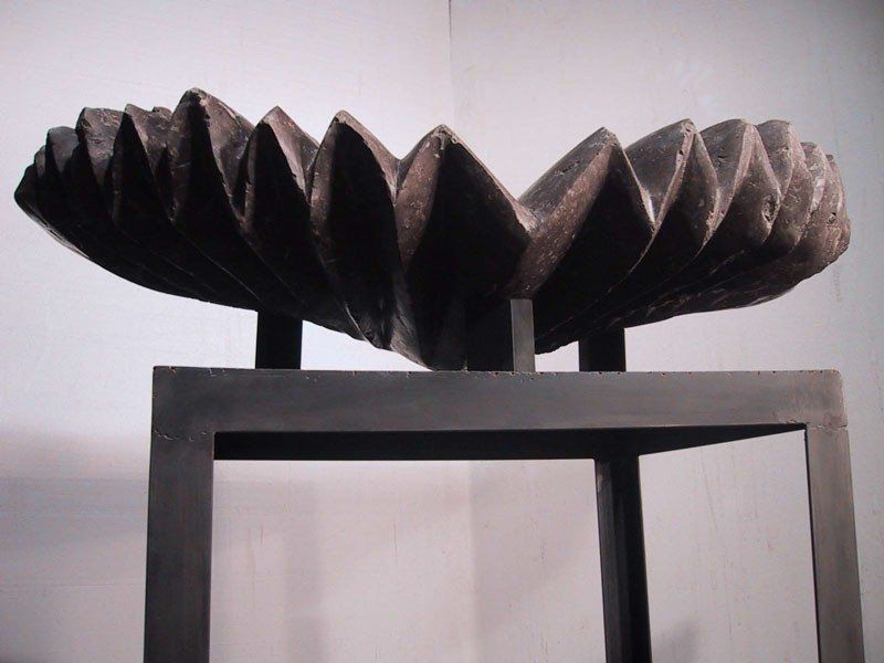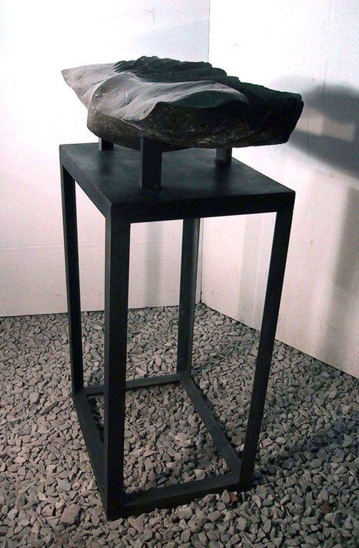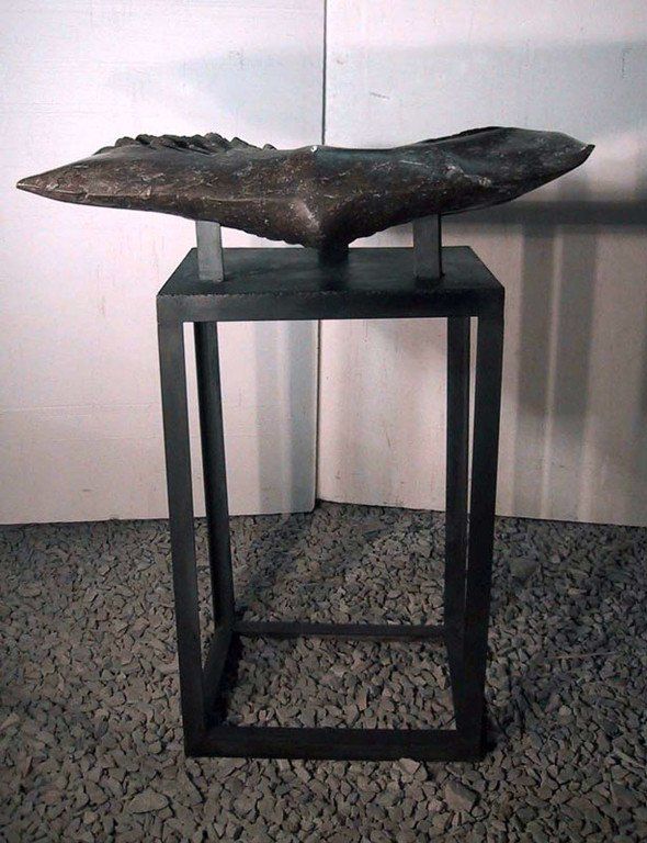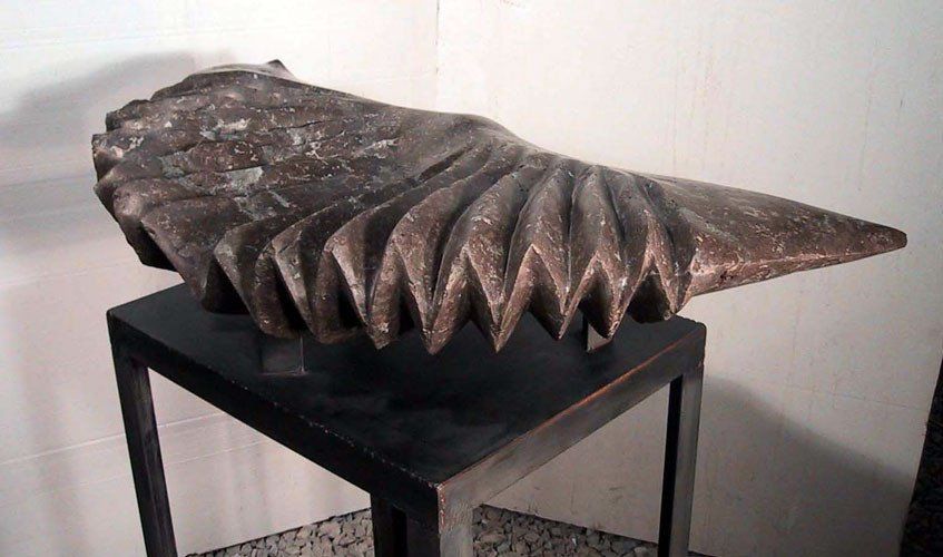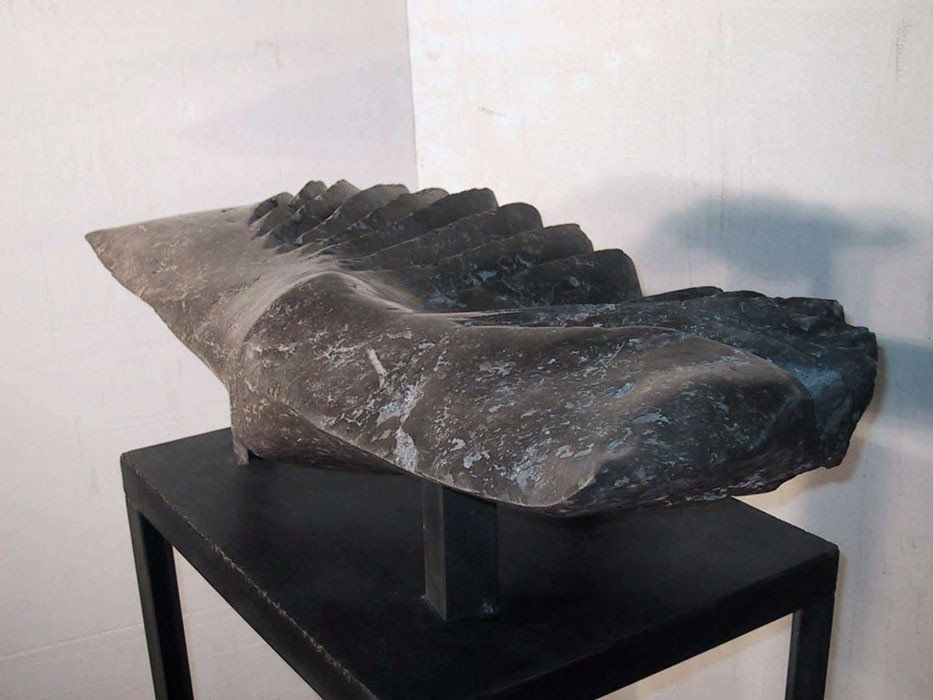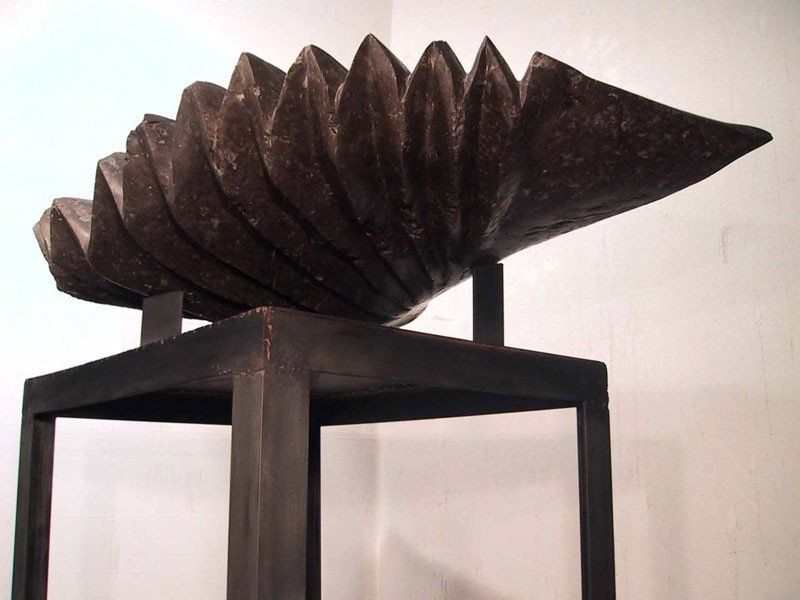 "Spirit" is the first piece in which I realized the shape of a winged being in stone. Here a dark, rich limestone that is polished in order to enhance its surface structure. The stone is loose in consistency and does not hold the sharpness of the shape, so that broken edges reveal the presence of the material.