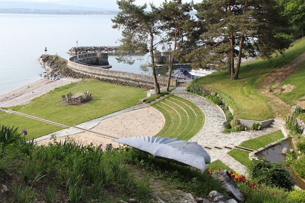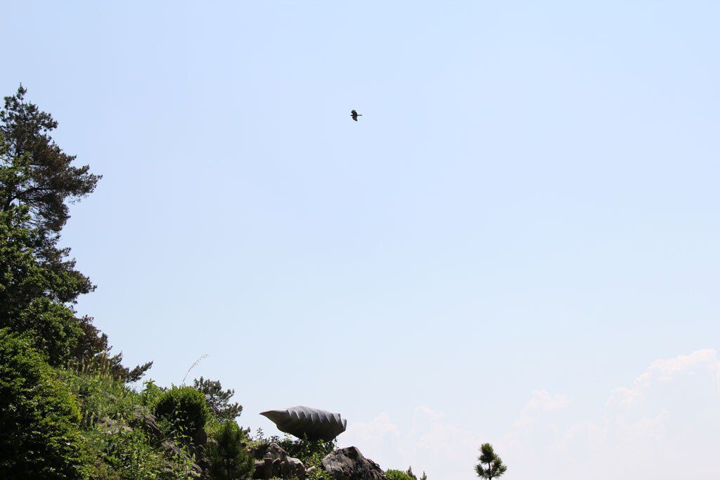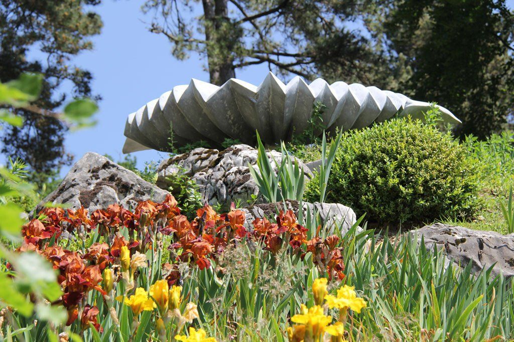 I always envisioned the piece located so that it is possible to approach it from above, as well as below, as the shape of this sculpture is this complete, complex form. In this location this is possible in various ways, as two paths lead up to it and meet to continue further up. These paths even reflect the zig-zag pattern, just as many elements in the garden take up this pattern as you look at it from above. The prey birds soar over it and make me think that they would wonder who that creature might be, that is reflecting their shape on the ground. As we encounter this form carved out of Italian Marble, we relate to it physically as a being that appears to be large, heavy and grounded. It has arrived, yet seems at ease and almost levitating, hovering over the ground vegetation, seemingly at rest after a long flight.