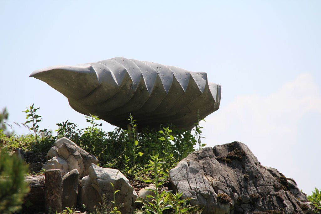 The “Winged Being” is based on a very small fossil, a petrified shell (Brachiopod) that one can find in the deteriorating cliffs around the Bay of Fundy in Nova Scotia. As a small object, this fossil fascinated me in its complexity of form. It has a very basic ridge pattern, that, as it comes together in a three-dimensional form from the underside and the top, creates a characteristic zig-zag line at its edge. For me it made sense as a form – it is very simple, yet very complex, a reflection on many things in our life.