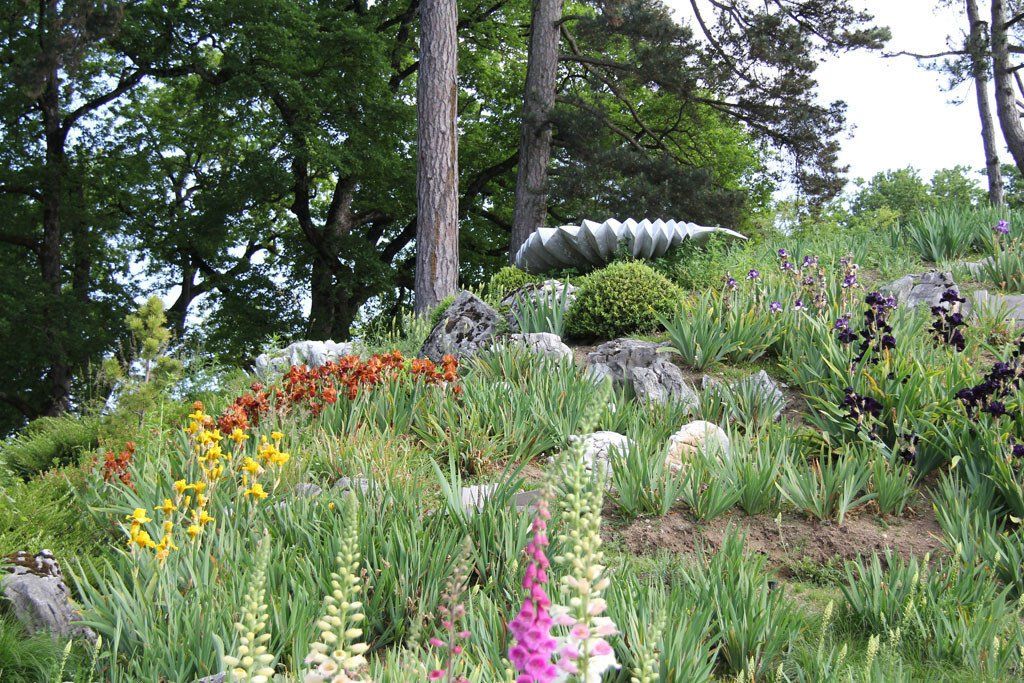 Ich habe mir diese Arbeit immer so an einem Standort vorgestellt, dass man sich von oben, aber auch von einem Standpunkt unterhalb der Skulptur annähern kann, denn die Gestalt dieses Werkes ist eine vollständige, komplexe Form. In dieser Position am Hang ist dies auf verschiedene Weise möglich, da zwei verschiedene Pfade zur Skulptur führen, die sich treffen um weiter nach oben zu gehen. Diese Pfade spiegeln sogar das Zickzackmuster wider, so wie andere Elemente im Garten dieses Muster wieder aufnehmen, wenn man die Skulptur von oben betrachtet. Die Greifvögel fliegen hoch in der Luft und man fragt sich ob sie sich darüber wundern, was für eine Kreatur das sein mag, die ihre Gestalt am Boden widerspiegelt. Wenn wir dieser Skulptur, die aus Italienischem Marmor gearbeitet ist, begegnen, stellen wir einen körperlichen Zusammenhang her mit diesem Wesen, dass groß, schwer und bodenständig erscheint. Es ist angekommen, wirkt aber gelassen, fast schwebend, über der Bodenbepflanzung gleitend, scheinbar in einer Ruheposition nach einem langen Flug.