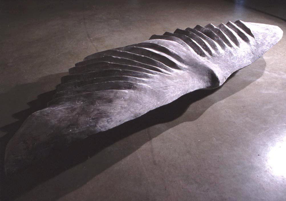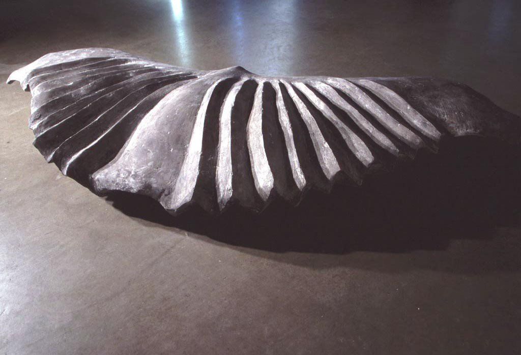 Calcium turned stone means life turned into mineral. Translating a nature of form into a sculpture as thing is about the manifestation of a moment of experience. Wings manifested in a "being" that relates in scale to our own physicality, allows for a meaningful encounter with form. The pieces talk about desire and transformation - and about being grounded on the earth.