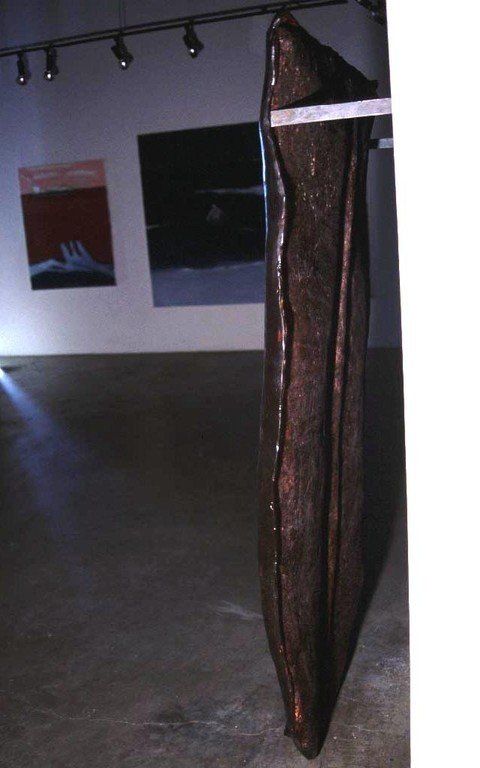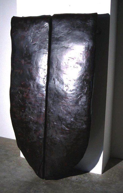 "Wings" is again the start of a new series of forms that will be cast in metal. It is made in a size of/for a human being. As a hybrid between a shield and the Winged Beings, mounted as armature against a wall, "wings" manifests a physical constraint. Winged in a shield, sheltered as a plate it defies the urge to go beyond; and at the same time, it triggers that desire - serving as a vehicle to do so. It is about the physical reality of a wishful crossing of borders.