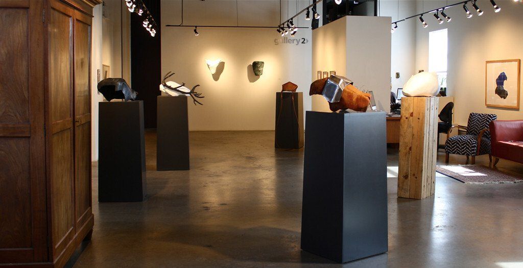 All the other pieces, also vaguely reminiscent of other animals, bear some sort of impediment. As the ambiguous title suggests, overlooked by the regal 'couple', the sculptures are also metaphors for a universal power structure. As human animals we face similar impediments, imposed by society to keep us in place and make us play our part.
