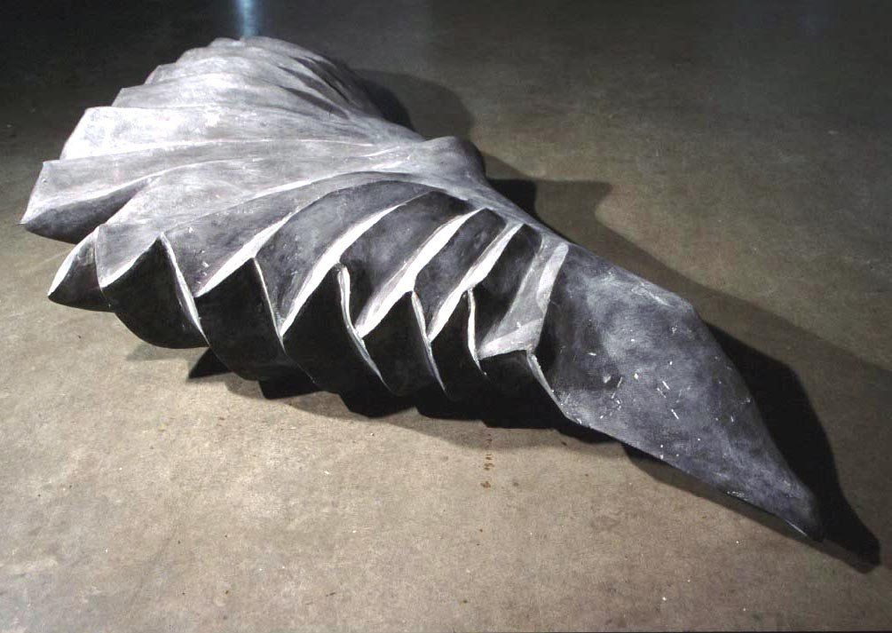 Winged Beings I + II, 2001 are the beginning of a series of new works that are made in hydrocal plaster for bronze and stone. The form reminds of a type of petrified shell that is found in the deteriorating cliffs around the Bay of Fundy.